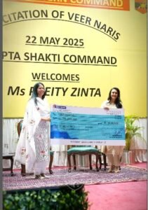 बॉलीवुड की मशहूर एक्ट्रेस और पंजाब किंग्स की ऑनर प्रीति जिंटा ने हाल ही में अपने सोशल मीडिया के ऑफिशियल अकाउंट इंस्टाग्राम में एक इवेंट का वीडियो शेयर किया और इसमें उन्होंने लिखा कि, – जैसे ही मैं इंडियन आर्मी के साउथ वेस्टर्न कमांड के ऑडिटोरियम में पहुंची, मैंने हर जगह सेना के अधिकारियों और जवानों के पोस्टर देखे, जिन्होंने विभिन्न बहादुरी पुरस्कार जीते। कुछ ने हमारे देश के लिए अपनी जान दे दी जबकि अन्य युद्ध के मैदान से जख्मों के निशान लेकर वापस आए। ये लोग पति, बेटे, भाई और पिता थे। वे हमारे सशस्त्र बलों का हिस्सा हैं और उन्होंने हमारे कल के लिए अपना आज कुर्बान कर दिया!