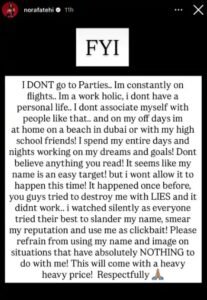 “जो भी पढ़ते हो, उस पर भरोसा मत करो। लगता है मेरा नाम इस्तेमाल करना बहुत आसान है। लेकिन इस बार मैं ऐसा होने नहीं दूंगी। ये पहले भी हुआ है, आप लोगों ने झूठ फैलाकर मुझे बर्बाद करने की कोशिश की थी, लेकिन वो कामयाब नहीं हुई। मैंने चुपचाप देखा जब हर कोई मेरी छवि खराब करने, मेरा नाम बदनाम करने और मुझे क्लिकबेट की तरह इस्तेमाल करने की कोशिश कर रहा था। कृपया मेरा नाम और मेरी तस्वीर उन मामलों में इस्तेमाल करने से बचें जिनका मुझसे जरा भी संबंध नहीं है। इसकी बहुत भारी कीमत चुकानी पड़ेगी।”