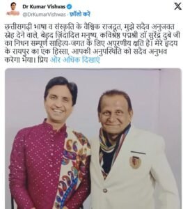 कुमार विश्वास की भावुक श्रद्धांजलि – “रायपुर का एक हिस्सा अब खाली है”