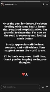 उन्होंने दूसरी स्टोरी में अपने ठीक होने की दी जानकारी…