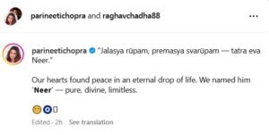 परिणीती और राघव ने शेयर किया बेटे का नाम…