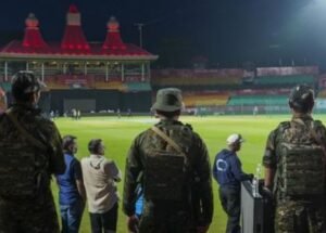 धर्मशाला स्टेडियम में NDRF की टीम धर्मशाला स्टेडियम पहुंची। सुरक्षा के कड़े इंतजाम किए गए। दर्शक दीर्घा से लेकर मीडिया बॉक्स तक कमांडो तैनात।