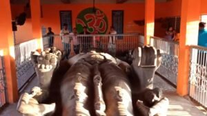 यह प्रतिम करीब 8.50 मीटर लंबी औख 3.70 मीटर चौड़ी है। उनके दाएं हाथ में रुद्राक्ष माला, ऊपरी हाथ में सर्प, निचले हाथ में कलश और कमर पर सिंह मुख है। उनके गले में रुद्राक्ष की माला भी है। प्रतिमा बेहद विशाल है। जो की विश्रामावस्था में विराजमान है।