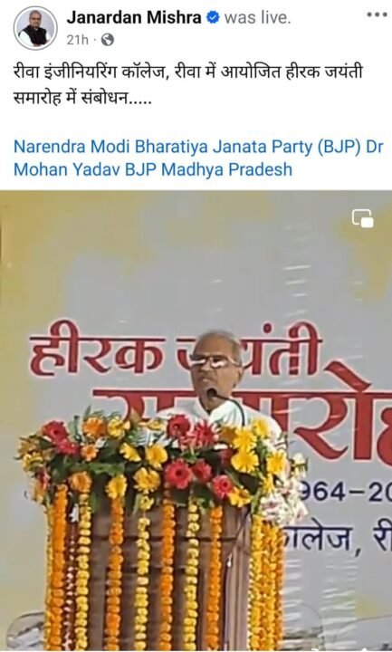 Mp News: रीवा से भाजपा सांसद जनार्दन मिश्रा अक्सर अपने बयानों को लेकर सुर्खियों में रहते हैं और एक बार फिर वो अपने बयान को लेकर चर्चा में हैं। इस बार उन्होंने मध्यप्रदेश के राज्यपाल मंगू भाई पटेल की मौजूदगी में ऐसी बात कही दी जो चर्चा का विषय बन गई है। मामला रीवा के शासकीय इंजीनियरिंग कॉलेज की 60वीं वर्षगांठ पर आयोजित कार्यक्रम का है जहां कार्यक्रम में राज्यपाल मंगू भाई पटेल भी शामिल होने पहुंचे थे।