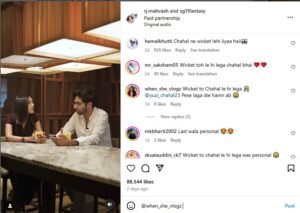 हाल हि में, एक वीडियो में आरजे महवश एक गेम में टीम बनाने की बात कर रही है, और लास्ट में कहती है, – ‘विकेट चहल तो ले ही लेगा’ जिसके बाद से यूजर्स चहल के नाम से कमेंट बॉक्स भर दिया है, और महवश की टांग खिचते नजर आ रहीं हैं।