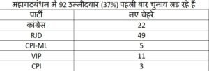 महागठबंधन (RJD+Congress+Left+VIP) ने इस बार 243 की जगह 255 उम्मीदवारों को मैदान में उतारकर चुनावी समीकरण को दिलचस्प बना दिया है।