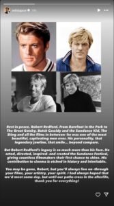 रेडफोर्ड के निधन के बाद हॉलीवुड और उनके चाहने वालों ने उन्हें भावुक शब्दों में याद किया।