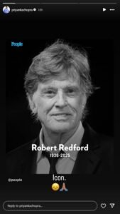 “आज सुबह जब मैंने पढ़ा कि बॉब (रॉबर्ट रेडफोर्ड) अब नहीं रहे तो मुझे गहरा झटका लगा। मैं रोना बंद नहीं कर पा रही हूं। वह मेरे लिए बहुत मायने रखते थे। वह हर तरह से एक बेहतरीन इंसान थे।”