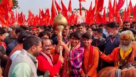 शुक्रवार को बागेश्वर बाबा ने शुक्रवार को सुबह साढ़े 8 बजे कदारी फार्मेसी कॉलेज से यात्रा की शुरुआत की. कदारी से गठेवरा होते हुए यात्रा छतरपुर शहर में प्रवेश हुई. छत्रसाल चौराहे पर धीरेन्द्र शास्त्री ने सभा को संबोधित किया. सभा में हैदराबाद की गोशामहल विधानसभा सीट से BJP विधायक टी राजा भी शामिल हुए. हैदराबाद की गोशामहल सीट से विधायक टी राजा ने कहा कि महाराज जी ने काफी अच्छा संकल्प लिया है. वह सभी धर्म के लोगों को एक साथ जोड़कर हिंदू राष्ट्र बना रहे हैं. गुरु ने हिंदुओं को जगाने के लिए एकता की रैली निकाली है. मैं भी इसमें शामिल होने आया हूं.