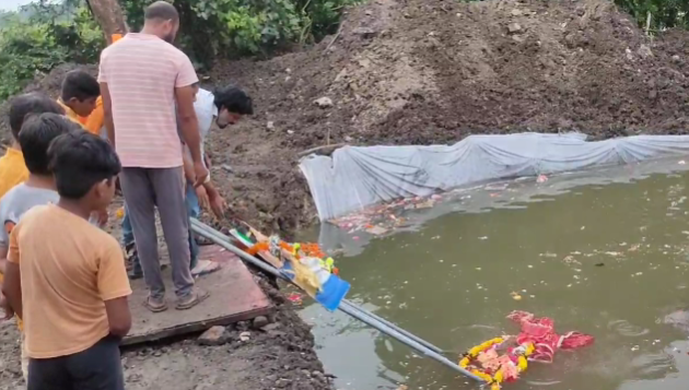 sehore जिले के भैरुंदा में अनंत चतुर्दर्शी पर गणेश प्रतिमाओं का विसर्जन धूमधाम से किया गया। श्रद्धालुओं ने ढोल की थाप और भक्ति गीतों के साथ विसर्जन स्थल पर पहुंचकर प्रतिमाओं का विसर्जन किया। मंगलवार को धूमधाम से अनंत चतुर्दशी पर्व धूमधाम से मनाया गया। हवन-पूजन के बाद भक्तों ने गणेश प्रतिमा का विर्सजन किया। वही नगर परिषद भैरुंदा अध्यक्ष मारुति शिशिर ने बताया कि नगर में 11 दिन गणेश उत्सव का पर्व बड़े ही धूमधाम से मनाया गया। ग्राम नंदगांव के समीप अम्बड़ नदी के पास विर्सजन कुंड प्रतिवर्ष बनाया जाता है और इस वर्ष भी विसर्जन कुंड बनाया। जहाँ भक्तों द्वारा गणेश प्रतिमा विसर्जित की जा रही है।