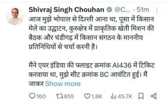 Shivraj Singh Air India News: अपने पोस्ट में चौहान ने कहा कि…