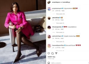 सोनम के पोस्ट डालते ही फैंस और दोस्तों ने बधाईयां देना शुरु कर कर दिया। पोस्ट मेंजैसे – प्रियंका चोपड़ा, भावना पांडे, कजिन करीन कपूर, परणीति चोपड़ा, आस्था शर्मा, भूमि पडनेकर जैसे कई सेलिब्रिटीज ने इंस्टाग्राम पर कॉमेंट कर सोनम को मां बनने की बधाईया दीं।