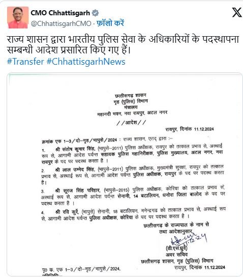 CG IPS Transfer List: इनका हुआ ट्रांसफर