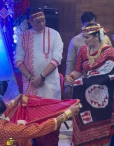 वीडियो में एक्ट्रेस ने रेड – व्हाइट कलर की साड़ी पहन रखी है। और माथे पर ‘जय माता दी’ की पट्टी बांधे हुईं हैं।