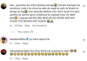एक यूजर ने तो यह भी कह दिया, “यह सीरियल सास-बहू की टॉक्सिसिटी से बचने के लिए था, लेकिन अब वही राह पकड़ लिया है।” कई यूजर्स का मानना था कि शो अब अपनी पुरानी चमक खो चुका है और अब केवल पैसा बनाने के लिए चलाया जा रहा है। एक यूजर ने तो यहां तक कह दिया, “इससे अच्छा है कि अनुपमा देख लो।” एक ने लिखा कि- और कितना घटिया करोगे हमारे बचपन के इमोशन्स जूड़े हैं, इस शो के साथ अब वक्त के साथ सब खत्म कर देंगे ये लोग नया एपिसोड देखना चोर दिया…