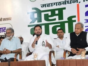 प्रेस कॉन्फ्रेंस में अशोक गहलोत ने स्पष्ट किया कि महागठबंधन का नेता तेजस्वी यादव हैं। उन्होंने कहा, “हमारा नेता तो तेजस्वी यादव हैं। NDA बताए कि उनका सीएम फेस कौन होगा। सिर्फ नीतीश कुमार के नेतृत्व में चुनाव लड़ेंगे, कहने से नहीं चलेगा।”