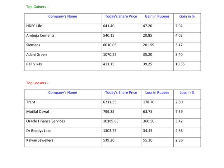 शेयर बाजाऱ आज हफ्ते के चौथे कारोबारी दिन यानी 16 जनवरी को बढ़त के साथ बंद हुआ आज बाजाऱ sensex मे 318 points की बढ़त के साथ 77042 पर बंद हुआ वहीं nifty 98 points की बढ़त के साथ 23311 पर बंद हुआ I आज sensex के 30 शेयर्स मे से 20 मे बढ़त और 10 मे गिरावट और nifty 50 मे 33 मे बढ़त और 17 मे गिरावट देखी गई l अगर सेक्टरल मोर्चे पर बात की जाए तो निफ़्टी बैंक, मेटल, और ऑइल एंड गैस सेक्टर सकारात्मक रुख से खुले जबकि एफएमसीजी, फार्मा, हेल्थकेयर और आई टी सेक्टर नकारात्मक रुख से खुले l