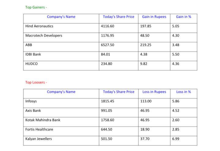 बढ़त और 21 मे गिरावट देखी गई l आज बाजाऱ मे शुरूआती गिरावट बहुत ज़्यादा थी हालांकि आखिरी 30