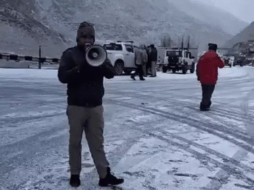बीती शाम पर्यटकों ने बर्फबारी का जश्न मनाया
