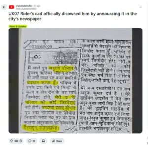 UK07 Rider Father Disinherits Property: ‘बिग बॉस 17’ के फेम कंटेस्टेंट और फेमस यूट्यूबर अनुराग डोभाल (UK07 Rider) इन दिनों सुर्खिओं में बने हुएं है, कुछ दिनों पहले उन्होंने आत्महत्या करने की कोशिश की थी, फिलहाल वो ICU में भर्ती है। लेकिन इस बीच हालचाल पूछने की वजह अनुराग के पिता ने उन्हें अपनी चल – अचल संपत्ती से बेदखल कर दिया है।