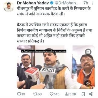 Pithampur Kachra: मुख्यमंत्री ने बताया कि यूनियन कार्बाइड के कचरे को अदालत के आदेश के तहत पीथमपुर भेजा गया था और इसे नष्ट करने की प्रक्रिया पर कोर्ट के निर्देशों के बाद ही आगे बढ़ने का निर्णय लिया जाएगा। सीएम ने स्थानीय लोगों से अपील की है कि वे अफवाहों पर विश्वास न करें और विश्वास रखें कि सरकार उनके साथ है।