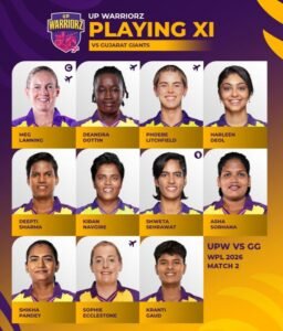 विमेंस प्रीमियर लीग (WPL 2026) के चौथे सीजन का पहला डबल हेडर मैच हुआ, जिसमें पहला मैच गुजरात जायंट्स और यूपी वॉरियर्स के बीच डीवाई पाटिल स्टेडियम में खेला गया। मैच में टॉस जीतकर यूपी वॉरियर्स की कैप्टेन मेग लैंनिग ने बॉलिंग करने का फैसला लिया। वहीं बल्लेबाजी करने उतरी यूपी टीम ने 20 ओवर में 4 विकेट खोकर 207 रन बनाए। गुजरात जायंट्स ने शानदार प्रदर्शन करते हुए यूपी वॉरियर्स को 10 रन से मात दी। इस जीत में गुजरात की कप्तान एश्ले गार्डनर की अहम भूमिका रही, जिन्होंने 65 रन की बेहतरीन पारी खेली।