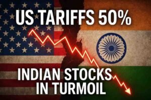 ‘अमेरिका ने भारतीय एक्सपोर्ट पर 50% तक टैरिफ लगा दिया, जिससे निवेशकों का भारतीय बाजाऱ पर भरोसा कम हुआ है साथ ही भारत के अन्य देशों से व्यापारिक प्रतिस्पर्धा और इकोनॉमिक ग्रोथ की संभावनाओं पर भी सवाल उठ रहे हैं। जिन सेक्टरों पर टैरीफ का सीधा प्रभाव पढ़ा है उनमे जाहिर है कमाई की संभावना भी कम हुई है ।