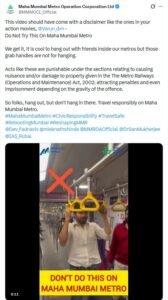“Do not try this in metro”⚡- MUMBAI METRO WARNS