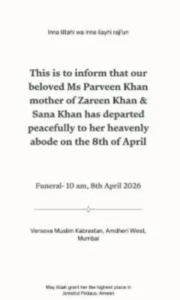 उनकी मां का अंतिम संस्कार 8 अप्रैल, 2026 को सुबह 10 बजे मुंबई के वर्सोवा में कर दिया गया।